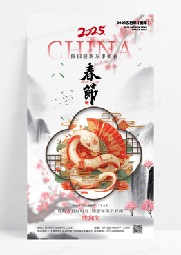 国风水墨风中国年春节蛇年海报设计