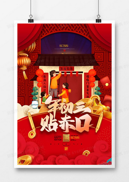 红色喜庆大年初三贴赤口新年系列插画海报设计