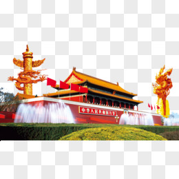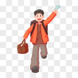卡通手绘学生们拿小红旗狂奔免抠元素