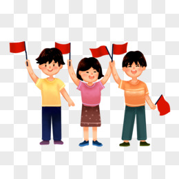 手绘卡通小朋友手拿小旗子庆祝免抠元素