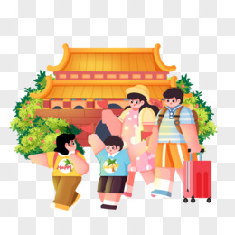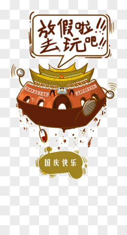 卡通手绘女孩拿着旗帜庆祝免抠元素
