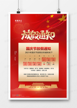 红色大气2021国庆节放假通知海报设计