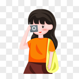 国庆节之手绘卡通拿着三角红色旗子的女孩子旅游