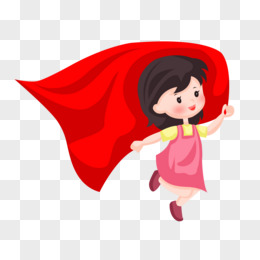国庆节之手绘卡通女孩拿着红旗跳跃