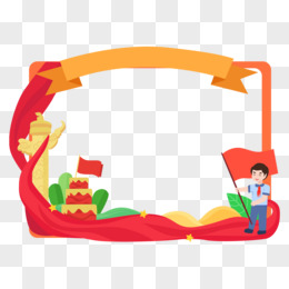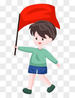 国庆节之手绘卡通小男孩手拿着三角红旗