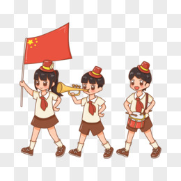 卡通红领巾少年仪仗队举旗免抠场景元素