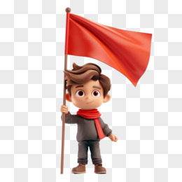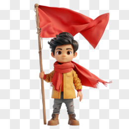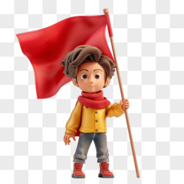 3D立体人物举着红旗免抠元素