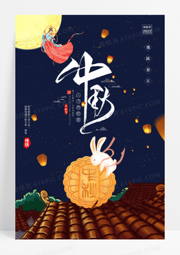 简约创意灯笼中秋节海报设计