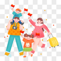 卡通手绘老师带着两个学生庆祝国庆节元素