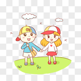 手绘卡通小朋友们手拿小旗子庆祝免抠元素