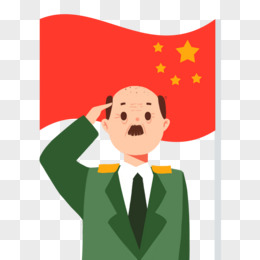 国旗下敬礼的老兵手绘免扣元素