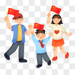 卡通手绘青少年举红旗庆祝免抠元素