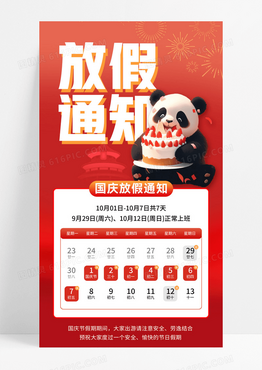 国庆节可爱的熊猫拿着红旗举着日历免抠元素