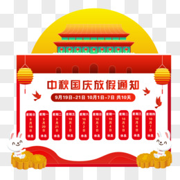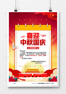 喜庆简约喜迎国庆中秋放假通知宣传海报设计