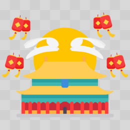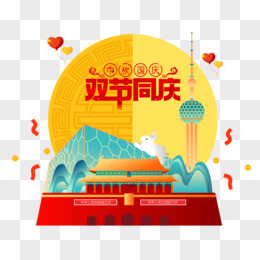 手绘卡通女孩吃月饼庆祝国庆免抠场景元素