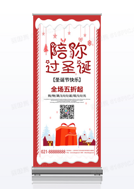红色创意简约陪你过圣诞促销活动展架易拉宝圣诞展架易拉宝