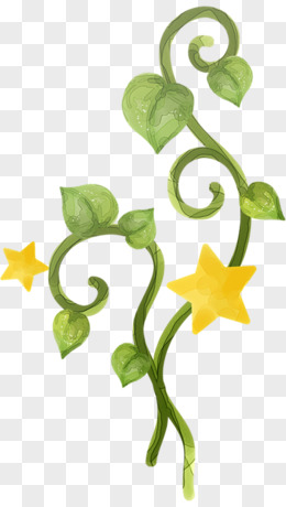 手绘绿色树叶黄色五角星果实