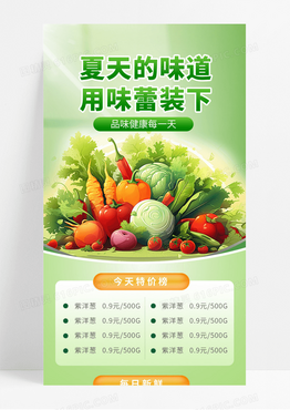 绿色清新背景夏天生鲜大促超市蔬菜促销手机海报