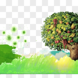 手绘卡通老爷爷和小朋友摘苹果插画免抠元素