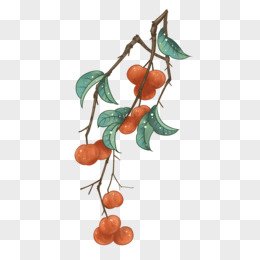 手绘带树枝水果柿子素材