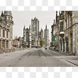 一组手绘扁平风国外代表性建筑群套图合集素材