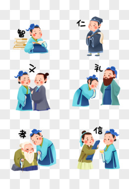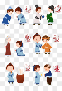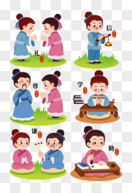 一套卡通手绘勤学精礼孝善国学套图之礼素材