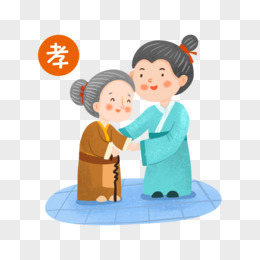 一套卡通手绘勤学精礼孝善国学套图之孝素材