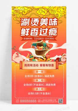 活动促销渐变色国潮涮烫美味鲜香过瘾火锅手机宣传海报