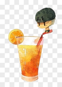 手绘插画风水果气泡水元素