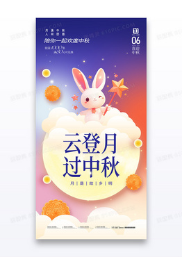 卡通可爱中秋节云登月过中秋兔子月饼节日海报