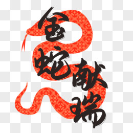 手绘一组金蛇献瑞艺术字