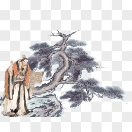 手绘水墨风屈原形象元素