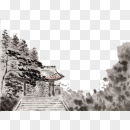 古风水墨山水免抠元素