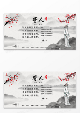 灰色背景创意大气中国风中国古诗寄人宣传展板设计