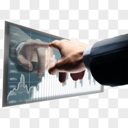 3D卡通一个男人拿着手机站在有股市走线图的屏幕旁免抠元素