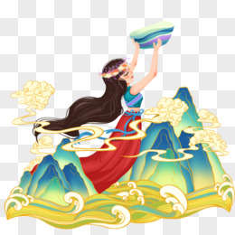 手绘国潮风神话故事女娲补天素材