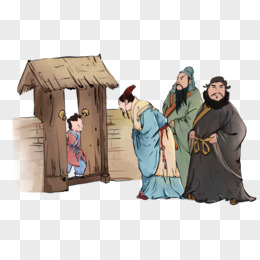 卡通手绘三顾茅庐成语故事场景素材