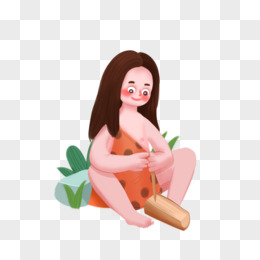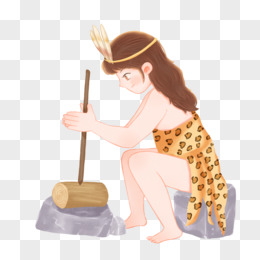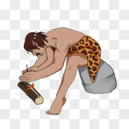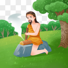 手绘卡通原始人砖木取火素材