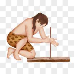 手绘原始人钻木取火素材