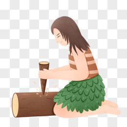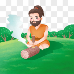 手绘古人钻木取火素材