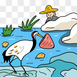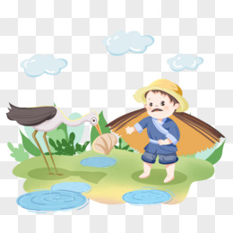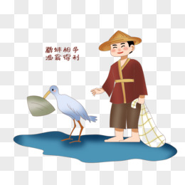 手绘鹬蚌相争渔翁得利故事免抠元素