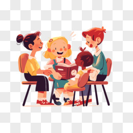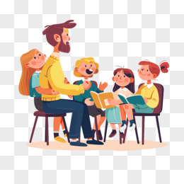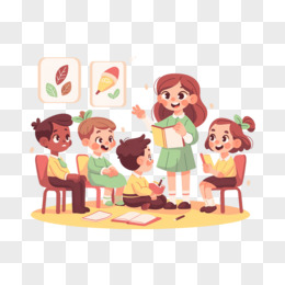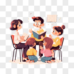 卡通手绘老师在教小朋友们阅读元素