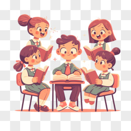卡通手绘小学生一起学习元素