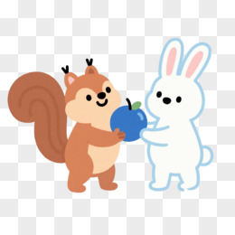 手绘小松鼠的彩虹果实之四遇见小兔免抠元素