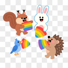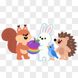 手绘小松鼠的彩虹果实之五朋友聚会免抠元素