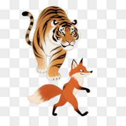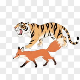 插画风狐假虎威故事免抠元素