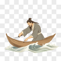 插画风刻舟求剑故事免抠元素