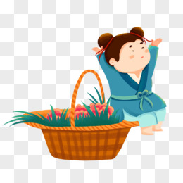 手绘卡通八仙过海蓝采和免抠素材