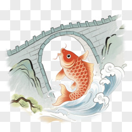 插画风绘本故事鲤鱼跳龙门免抠元素