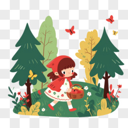 卡通插画风小红帽绘本故事免抠元素